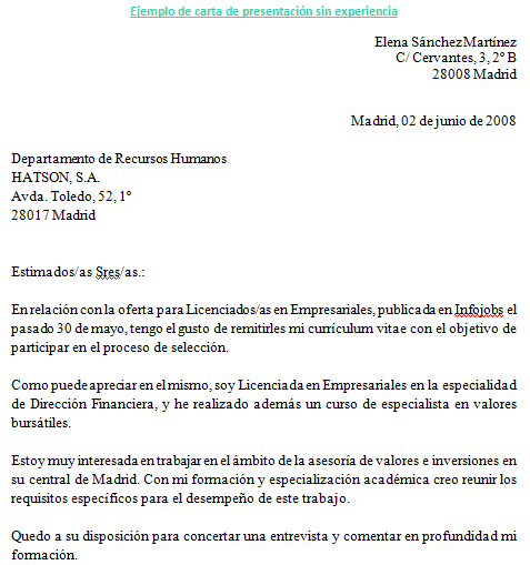 La carta de presentación sin experienciaes una carta adecuada para los jóvenes que se inicien en la búsqueda de empleo y no sepan como enfocar este tipo de cartas de presentación.